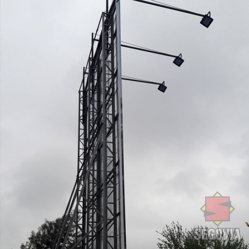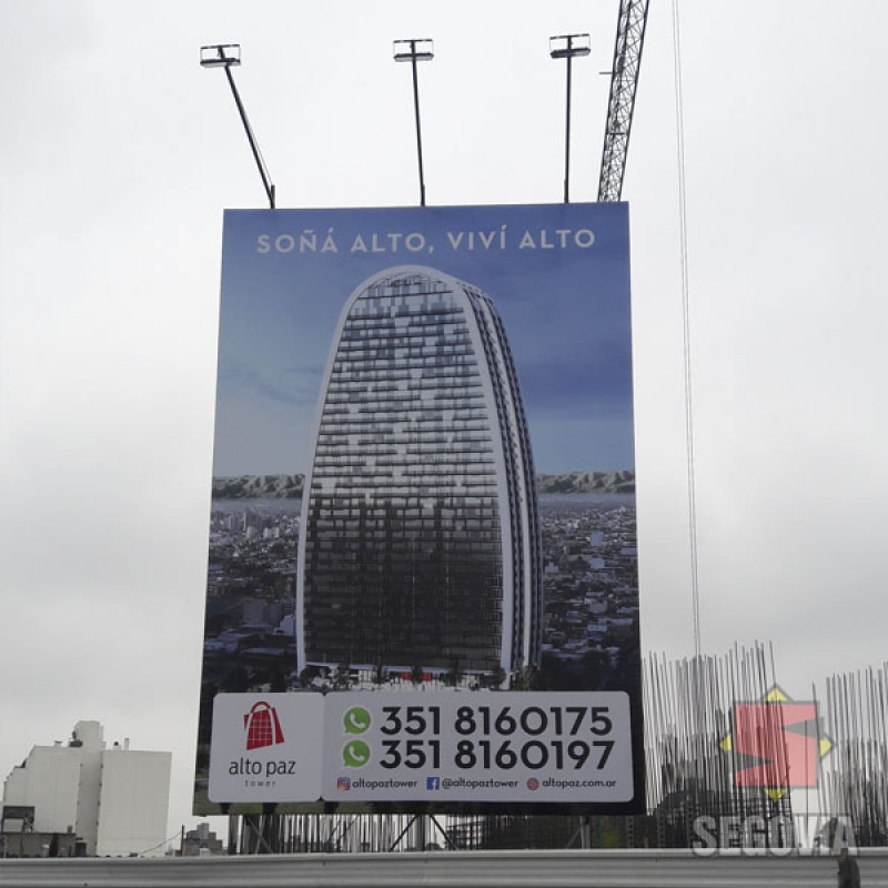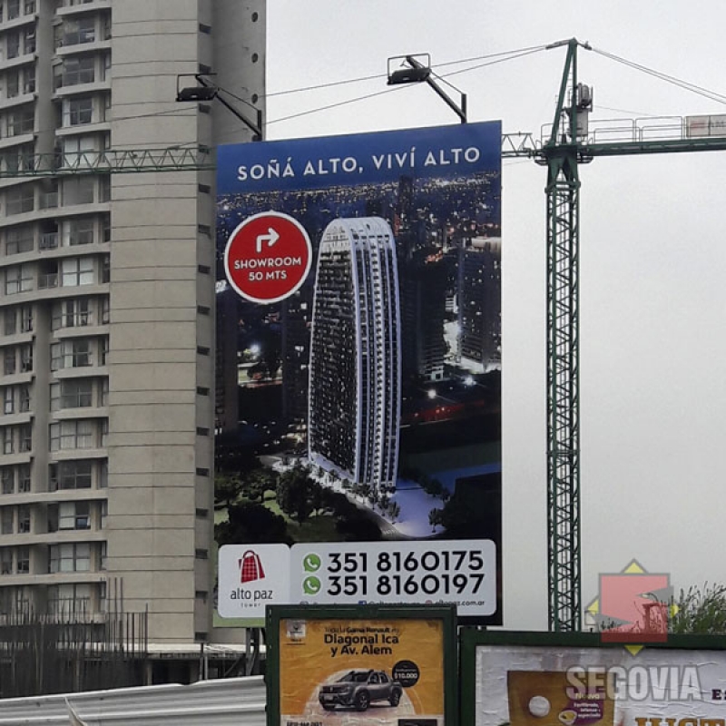 Cartel vía pública con reflectores LED de iluminación, gráfica impresa en lona front