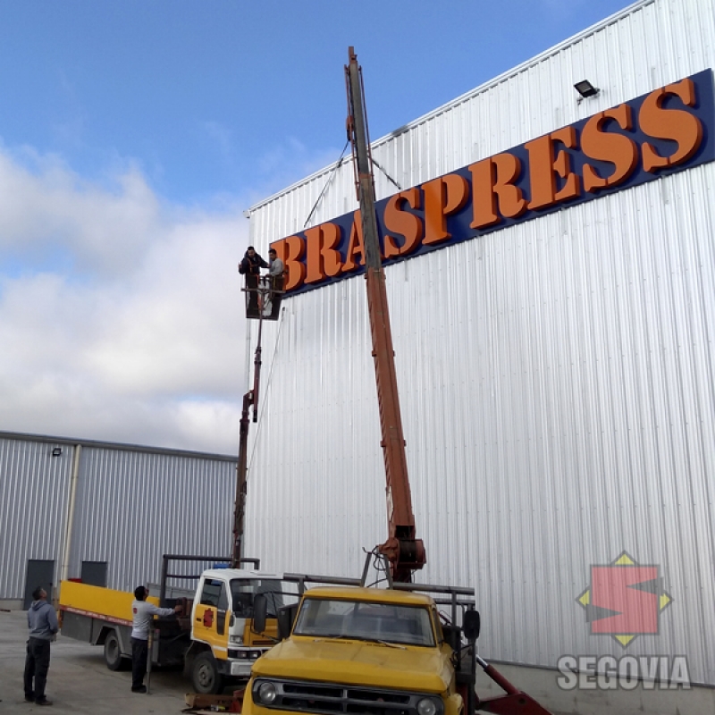 Letras corpóreas de chapa galvanizada, estructura cajón y terminación con pintura. Estructura azul base de caño y recubierta en chapa galvanizada.